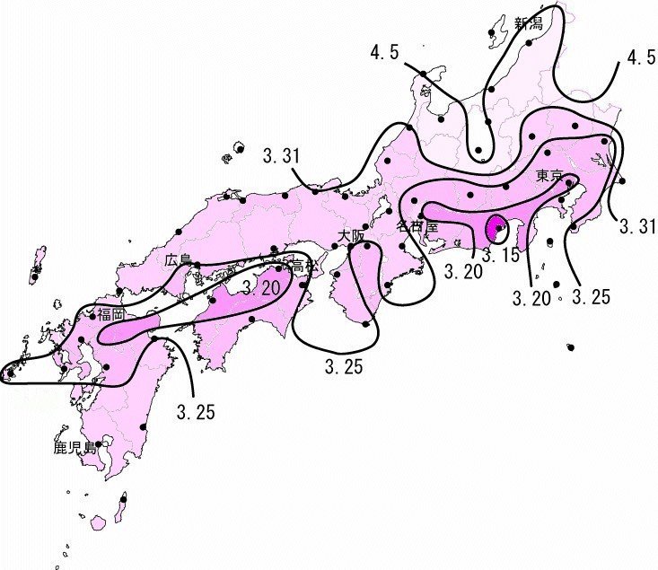 気象庁は7日、九州から関東地方までの桜(ソメイヨシノ)の開花予想を発表した。開花日は暖冬の影響で平年よりかなり早い所が多く、最も早いのは静岡で、平年より15日も早い13日。次いで高松、松山が17日、東京は18日となっている。